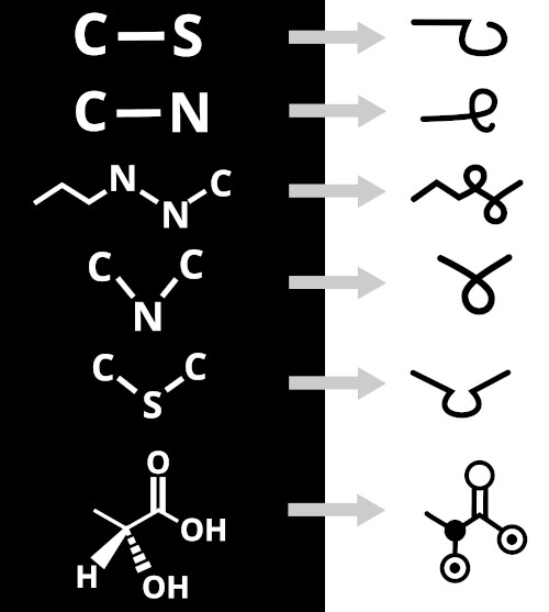 Dscript for chemistry is an adaptation of dscript that allows molecules to be drawn as dimensional symbols. It is particularly geared toward organic chemistry